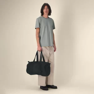 Crafted from 80% recycled cotton and 20% recycled polyester with organic cotton lining. A durable, eco-friendly travel essential featuring sturdy grosgrain handles, detachable straps, and smart inside pockets for everyday or weekend adventures.